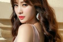 柳岩淡粉色紧身长裙展示丰满身材