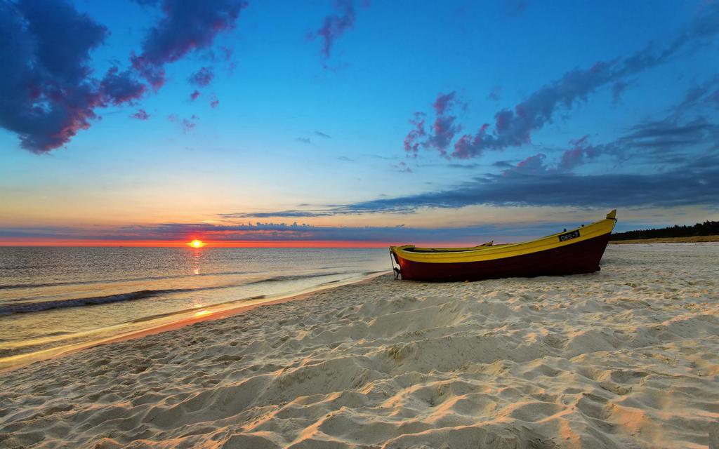 图集介绍:岸边唯美小船风景壁纸,岸边的小船,孤独的站在那里,看着潮起潮落,静静的看着太阳升起,只是那么静静的,有种孤独的绝美,但是却与伤感无关。