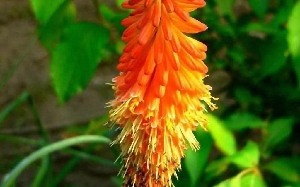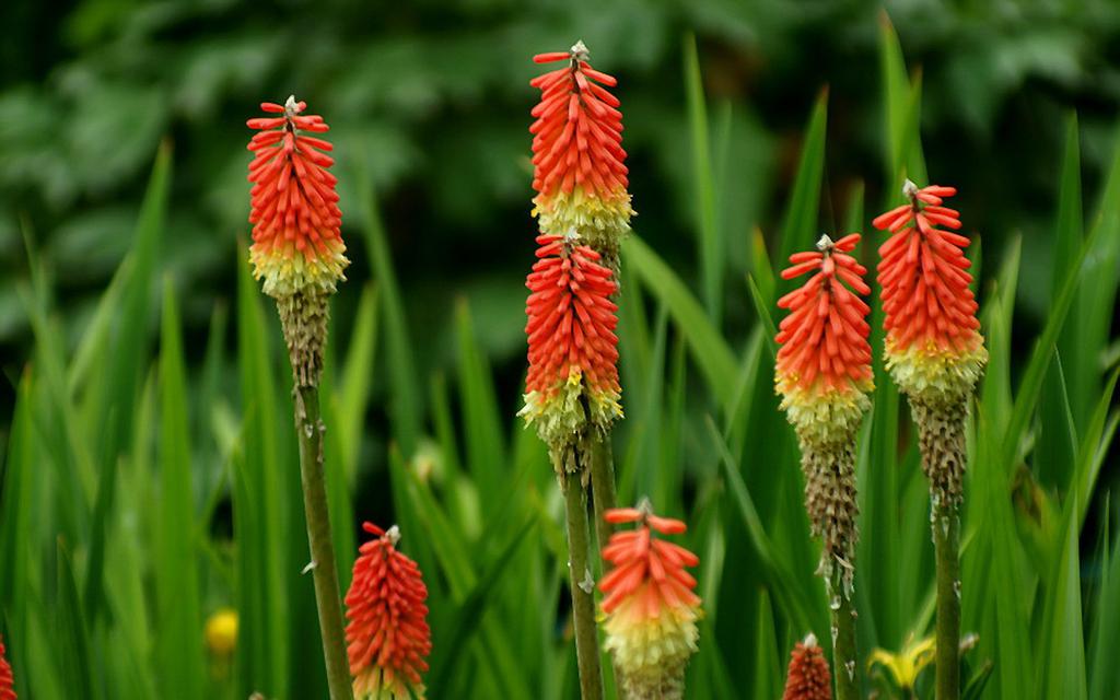 图集介绍:火炬花植物壁纸,株高80~120厘米,茎直立。总状花序着生数百朵筒状小花,呈火炬形,花冠橘红色,花期6~7月。叶线形。蒴果黄褐色,果期9月。