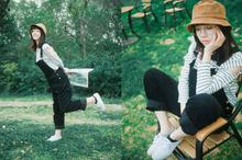 俏皮戴帽背带裤女生