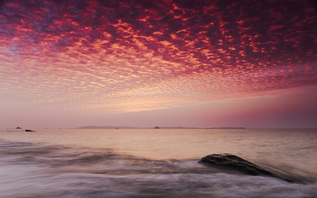 图集介绍:唯美的大海晚霞风景壁纸,暮色中的大海,太阳逐渐淡出前,褪去了似火的光芒,像是耗尽最后心力不吝生息,为傍晚的海面洒下最后余辉,依然晚霞染红海面,呈现给人们一片银色的海面!