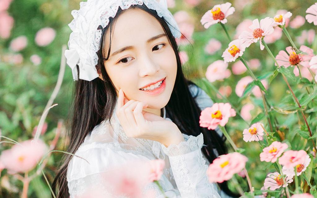 图集介绍:蕾丝裙美女复古风花海写真高清桌面壁纸。图片中的女孩长相清秀养眼,笑容治愈,十分唯美。