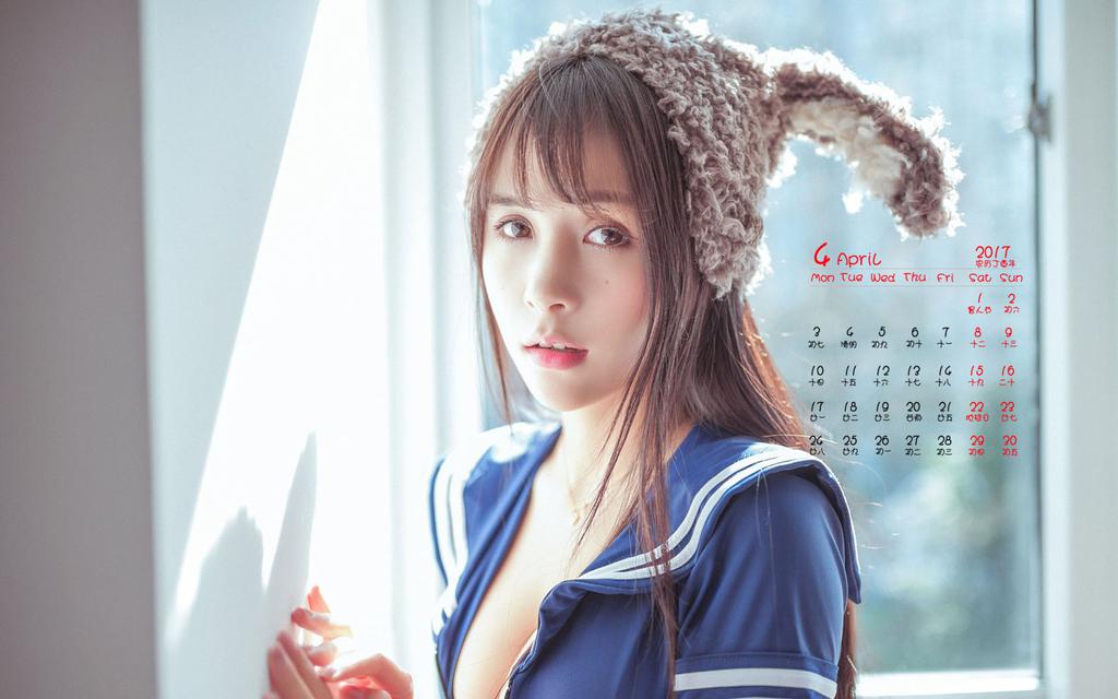 图集介绍:2017年4月日历,美女,小清新,网红,夏美酱,水手服,诱惑,日历壁纸.