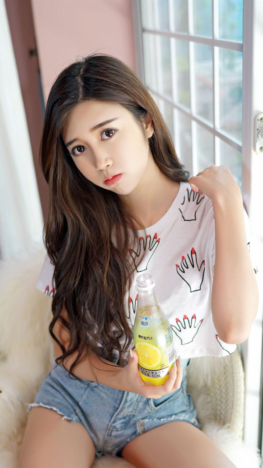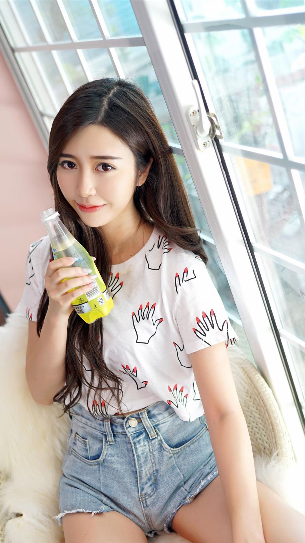 图集介绍:甜美清新美女,饮料,瓶子,美腿,性感,诱惑,居家写真