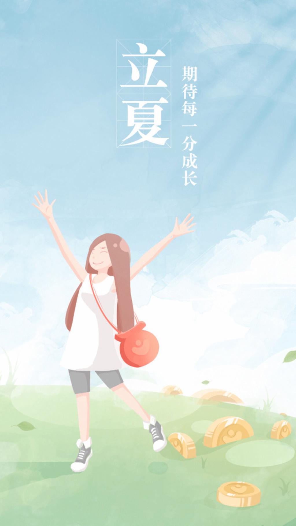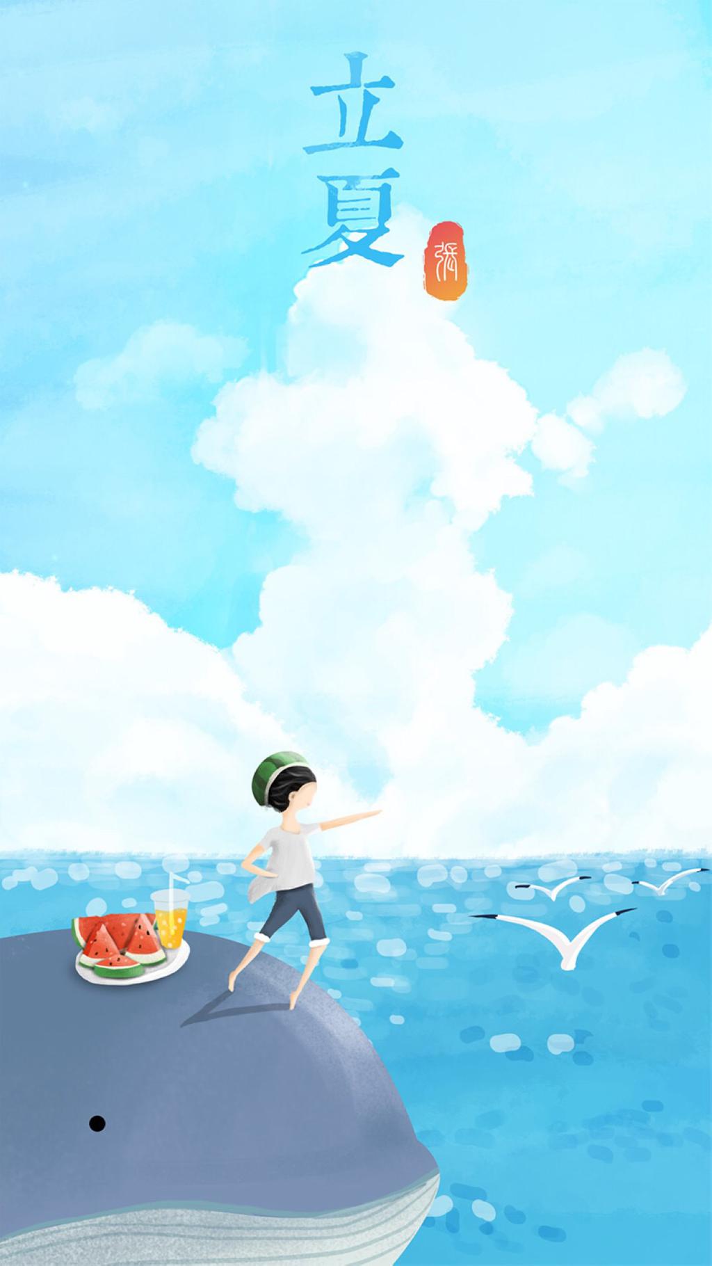 图集介绍:手绘创意插画二十四节气立夏节气手机壁纸,“立夏”的“夏”是“大”的意思,是指春天播种的植物已经直立长大了。