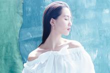 程潇孔雀绿露肩长裙性感迷人写真