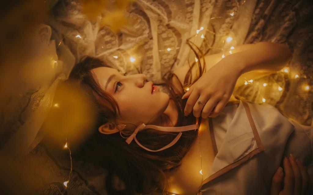 图集介绍:灯光下的美女唯美写真高清桌面壁纸。唯美暖色调星星灯光洒在美少女脸上气质无比,希望大家喜欢。