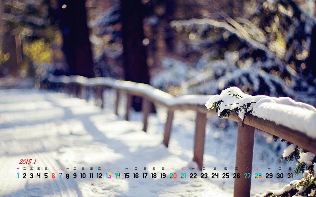 2018年1月雪景日历