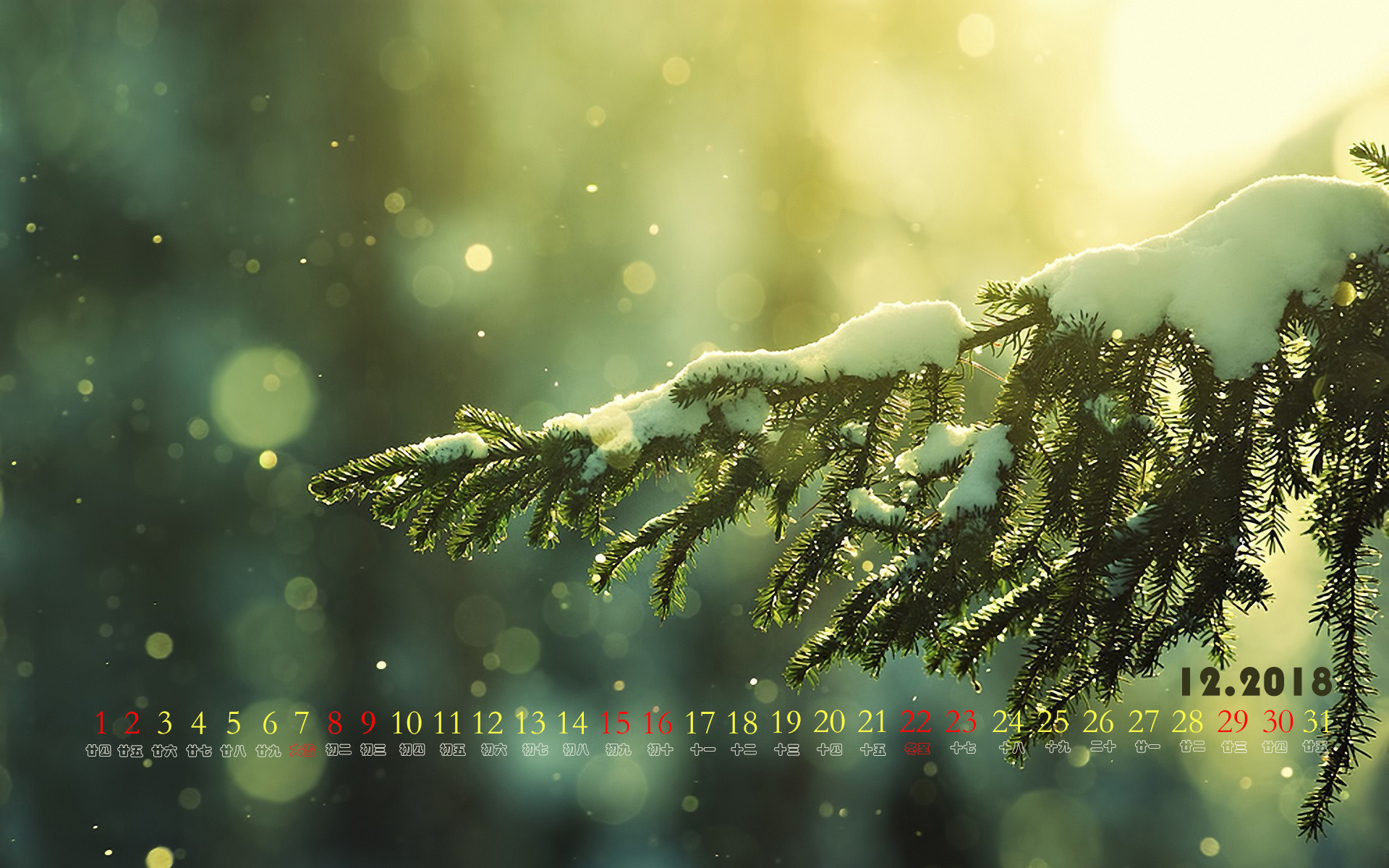 2018年12月日历冬日阳光