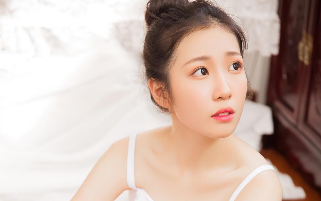 甜美少女纯白色吊带裙私房写真