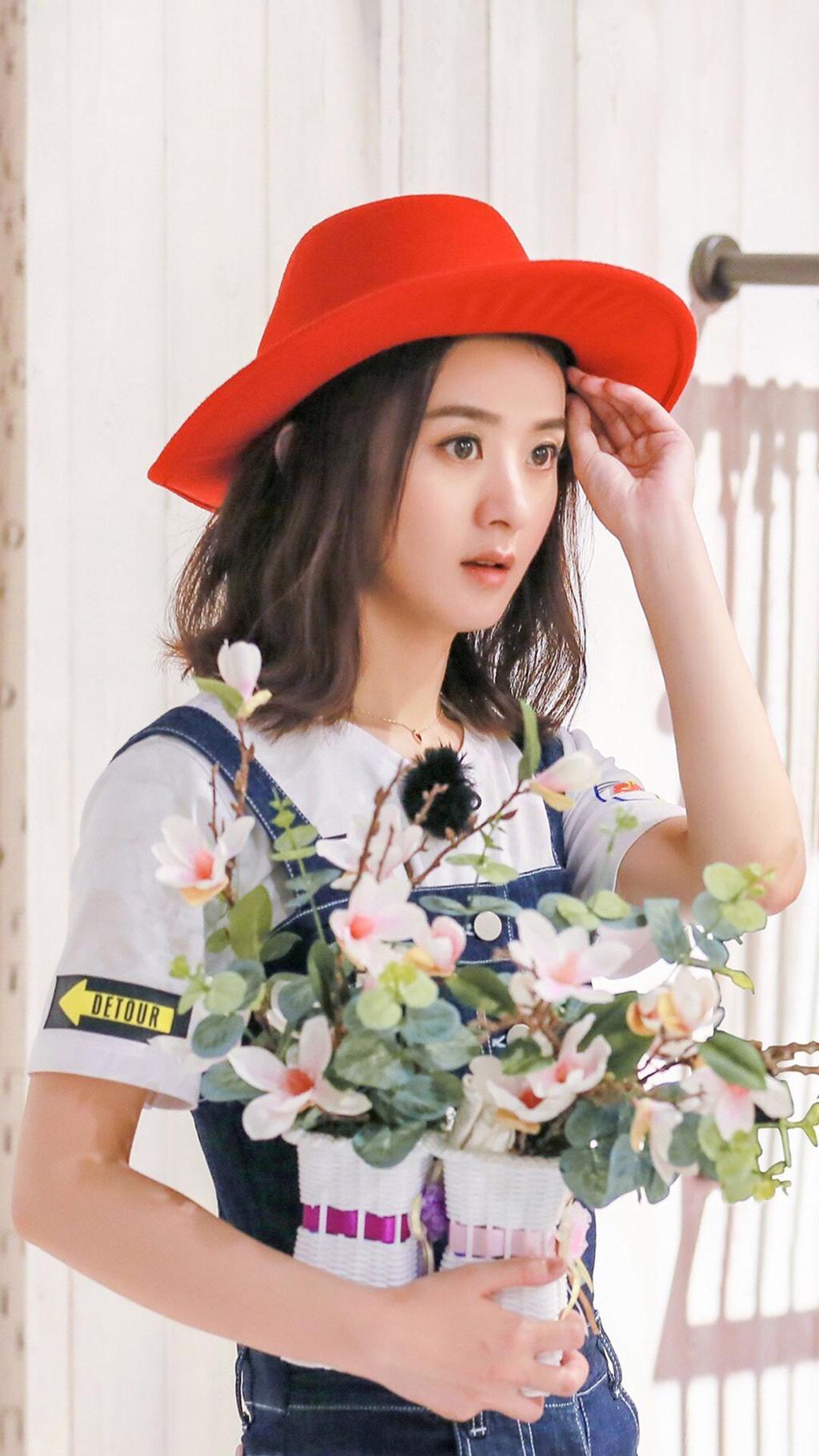 图集介绍:赵丽颖小红帽牛仔裤手机壁纸,赵丽颖出席活动,戴小红帽穿背带裤萌天萌地萌空气,网友:这衣服很容易尿裤子 。