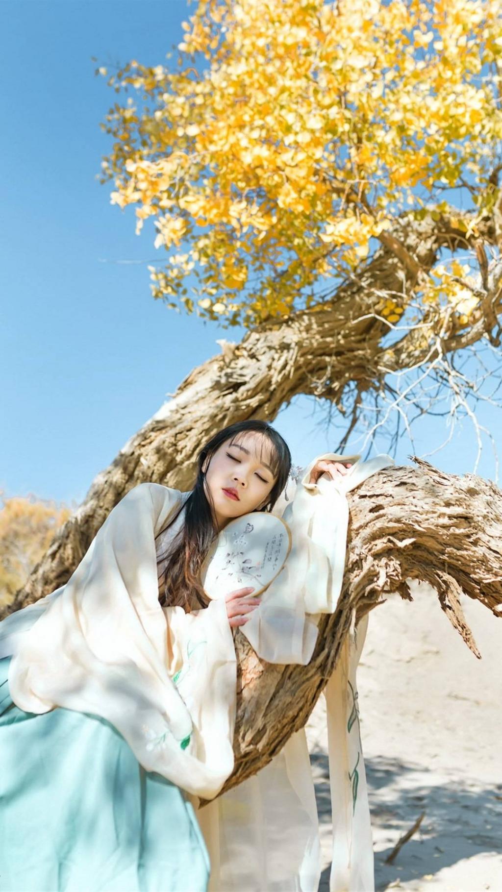 图集介绍:天蓝得那么毫无遮揽,让人的心恬静,幽静;秋天也可以是一个思念的季节,满怀秋思,暗自悲伤。分享一组美人秋思唯美手机壁纸。
