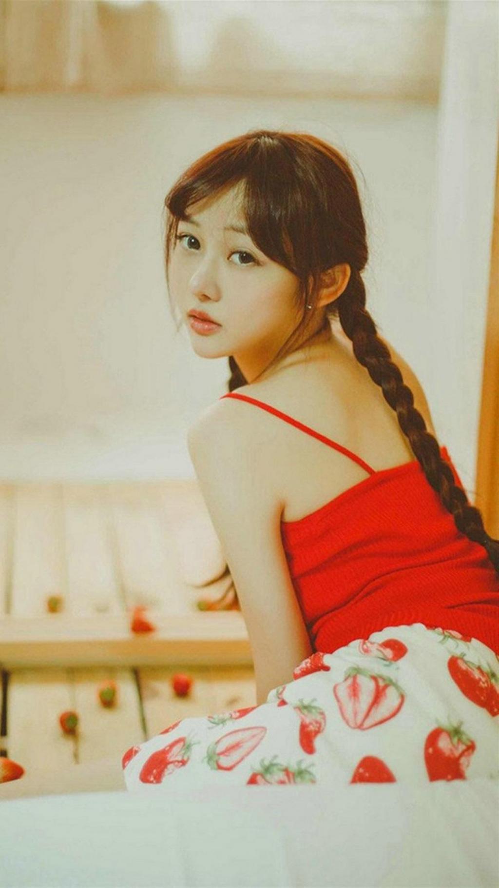 麻花辫甜美少女室内写真手机壁纸