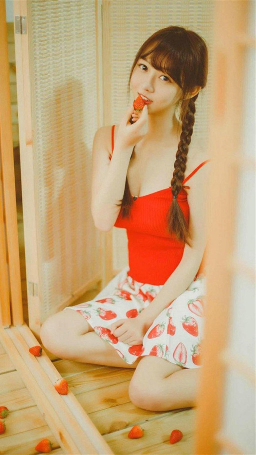 图集介绍:清纯甜美型草莓女生居家写真关于甜美美女,气质美女,可爱女生,萌妹纸等精美壁纸,支持各种机型可以用二维码下载,让您能够更加方便的下载到更加精美的高质量手机壁纸。
