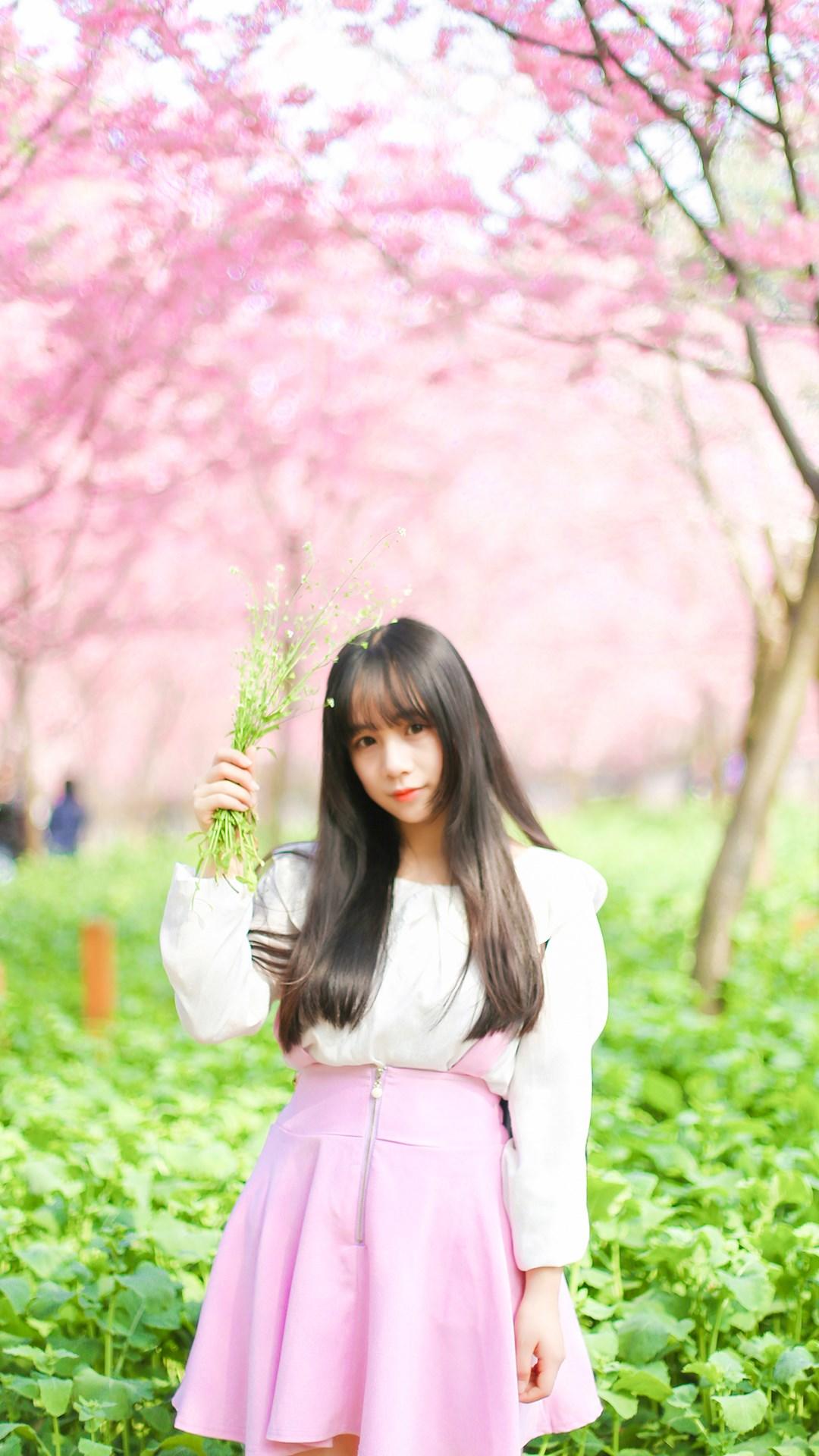 樱花少女唯美写真手机壁纸