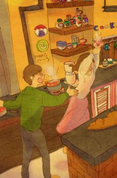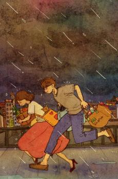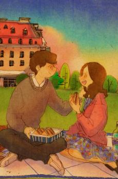 韩国风甜蜜情侣插画