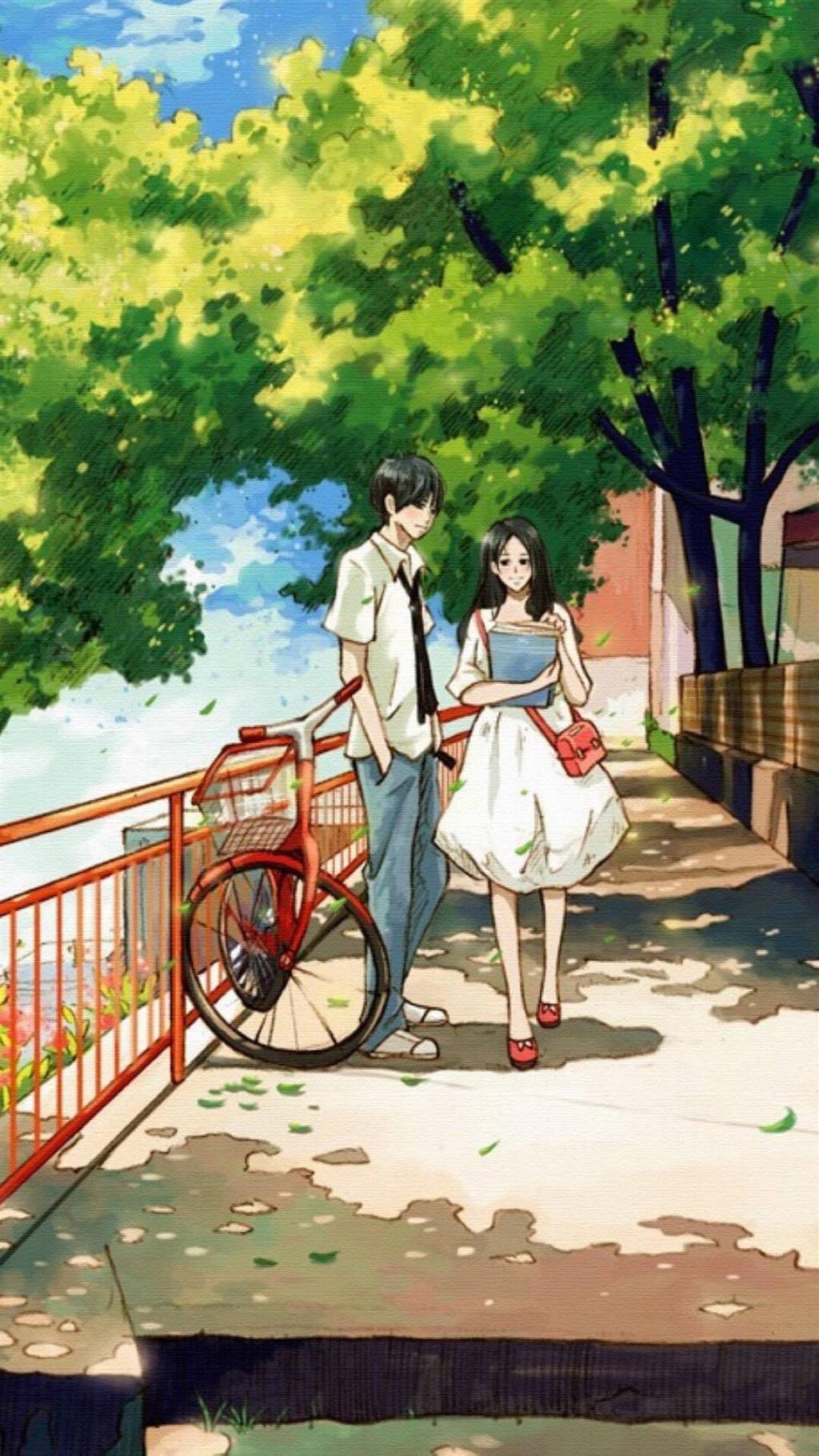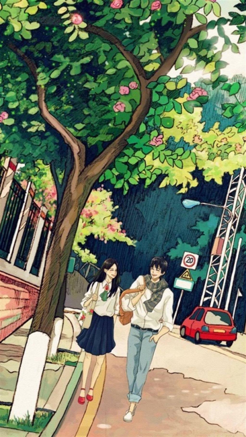 情侣专属复古风动漫手绘插画