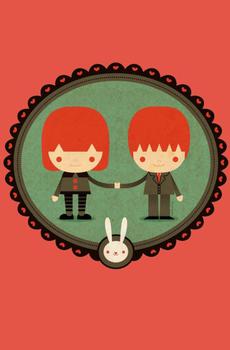情侣专属复古风动漫手绘插画