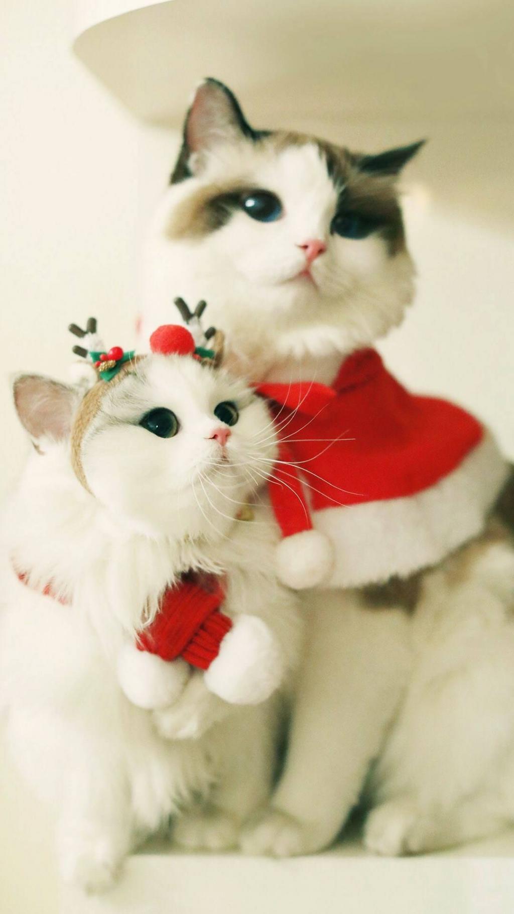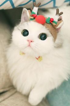可爱圣诞白猫