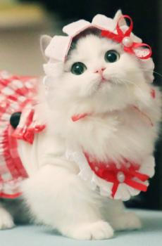 可爱圣诞白猫