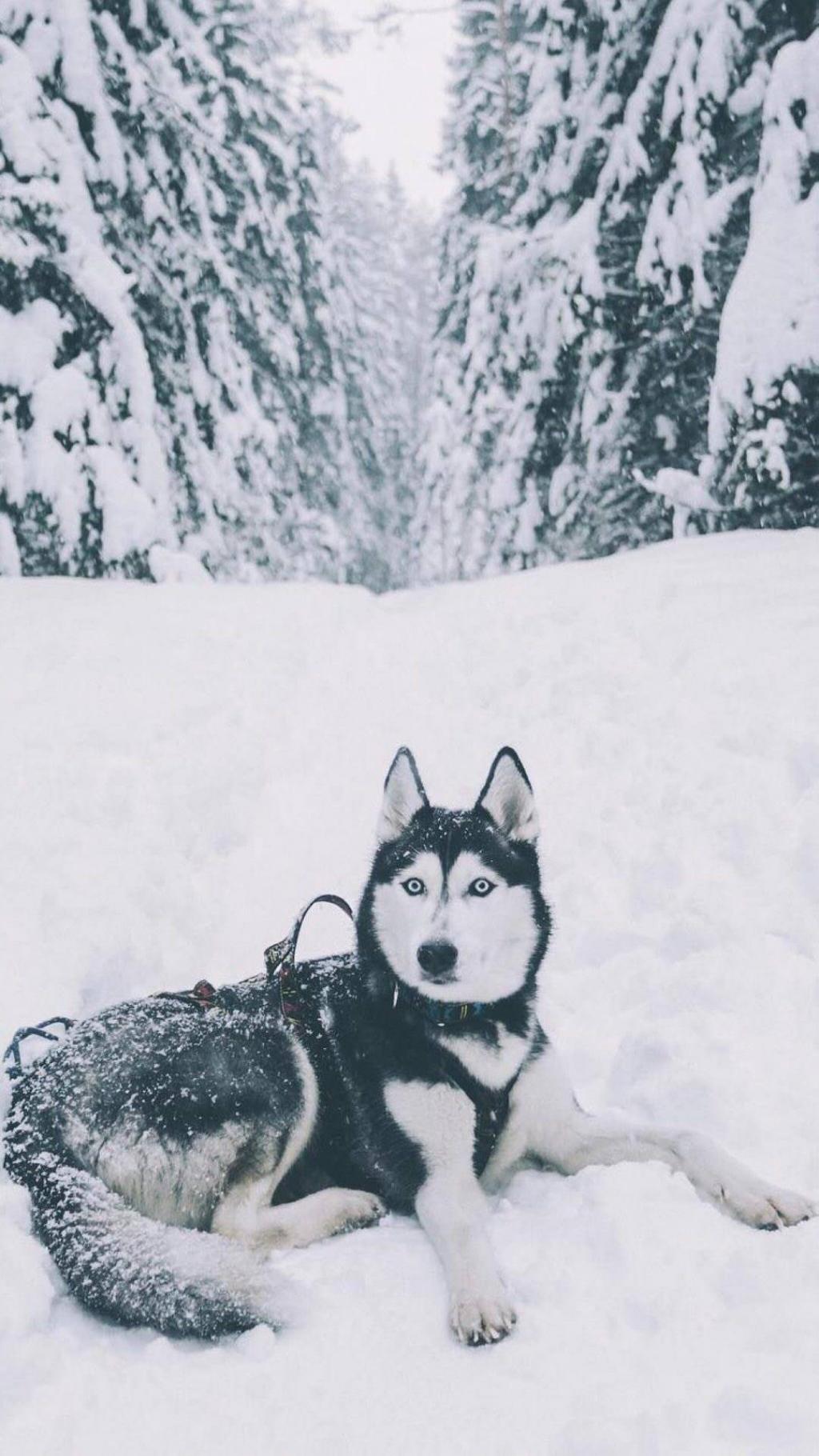 呆萌哈士奇雪中写真