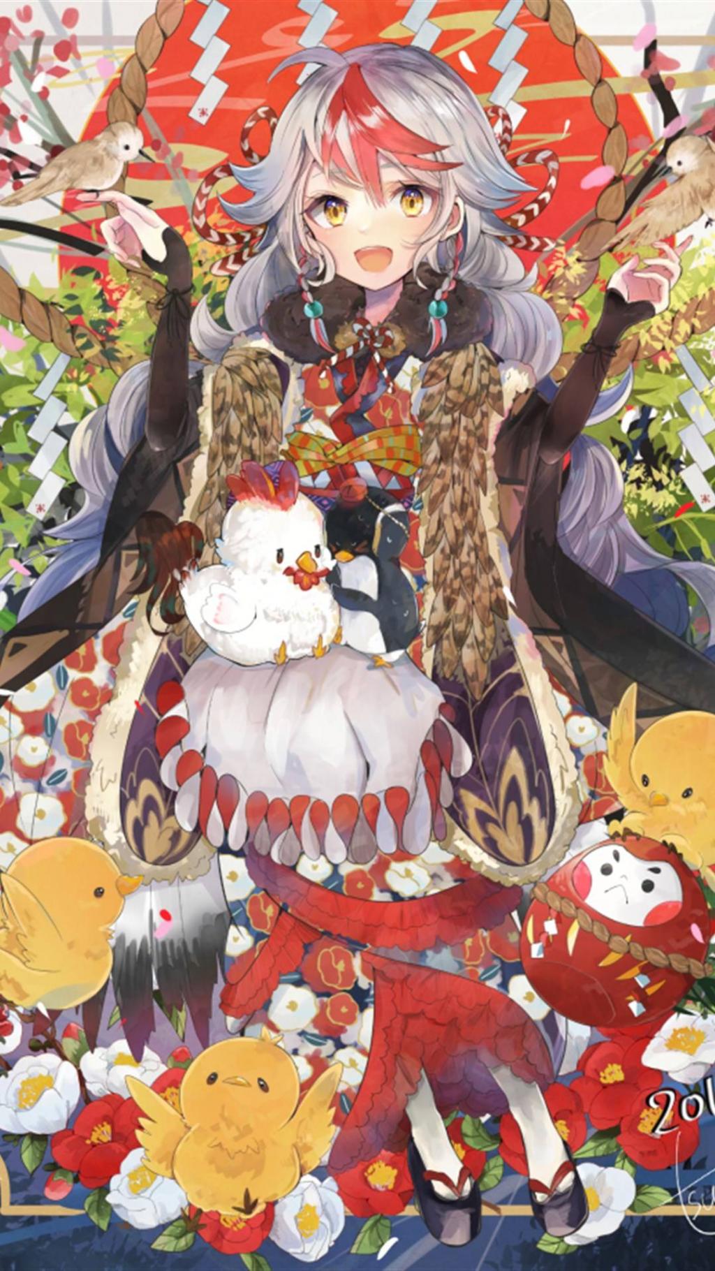 图集介绍:二次元萌妹纸新春贺图关于2017年,鸡年,新年,带字,新春,春节,春节祝福,祝福,动漫,二次元等精美壁纸,支持各种机型可以用二维码下载,让您能够更加方便的下载到更加精美的高质量手机壁纸。