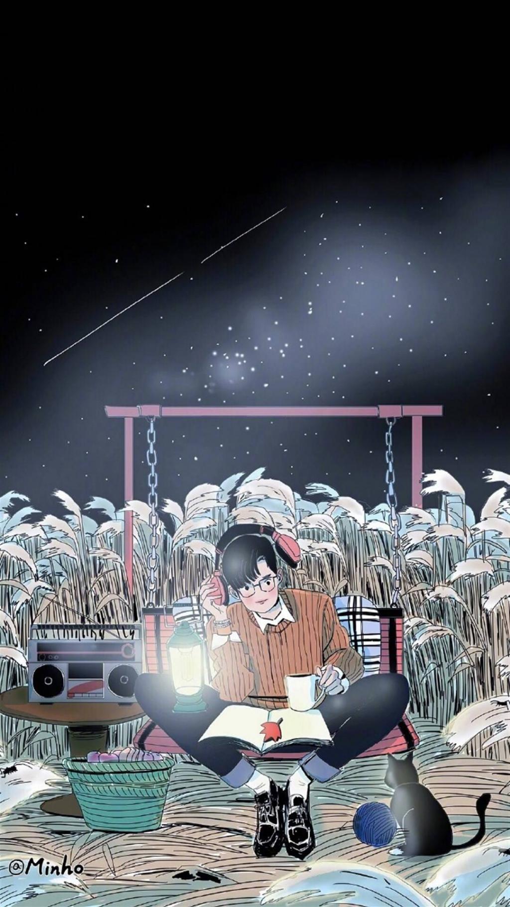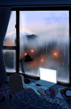 小清新治愈动漫场景手绘插画