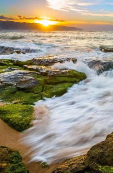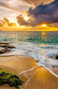 唯美夕阳与一望无际的大海