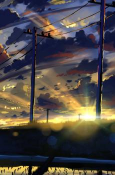 动漫傍晚火烧云风景