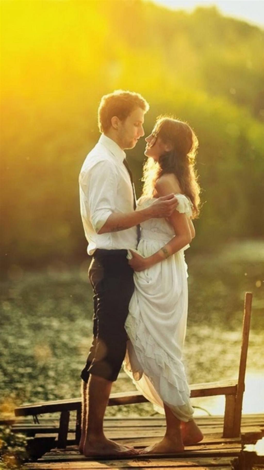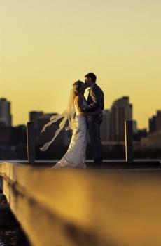 夕阳下的情侣剪影