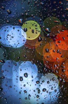下雨天玻璃水汽水珠特写