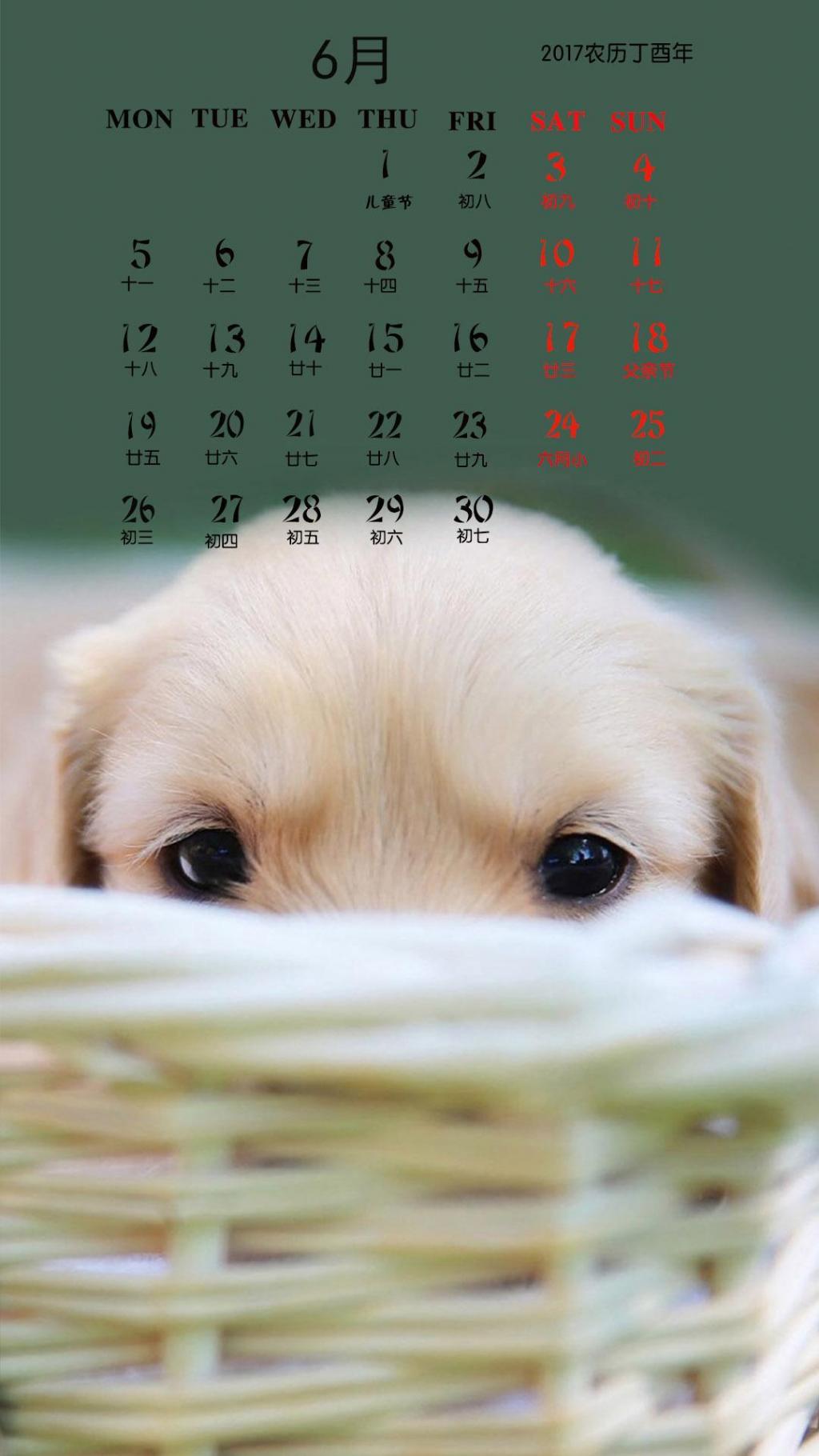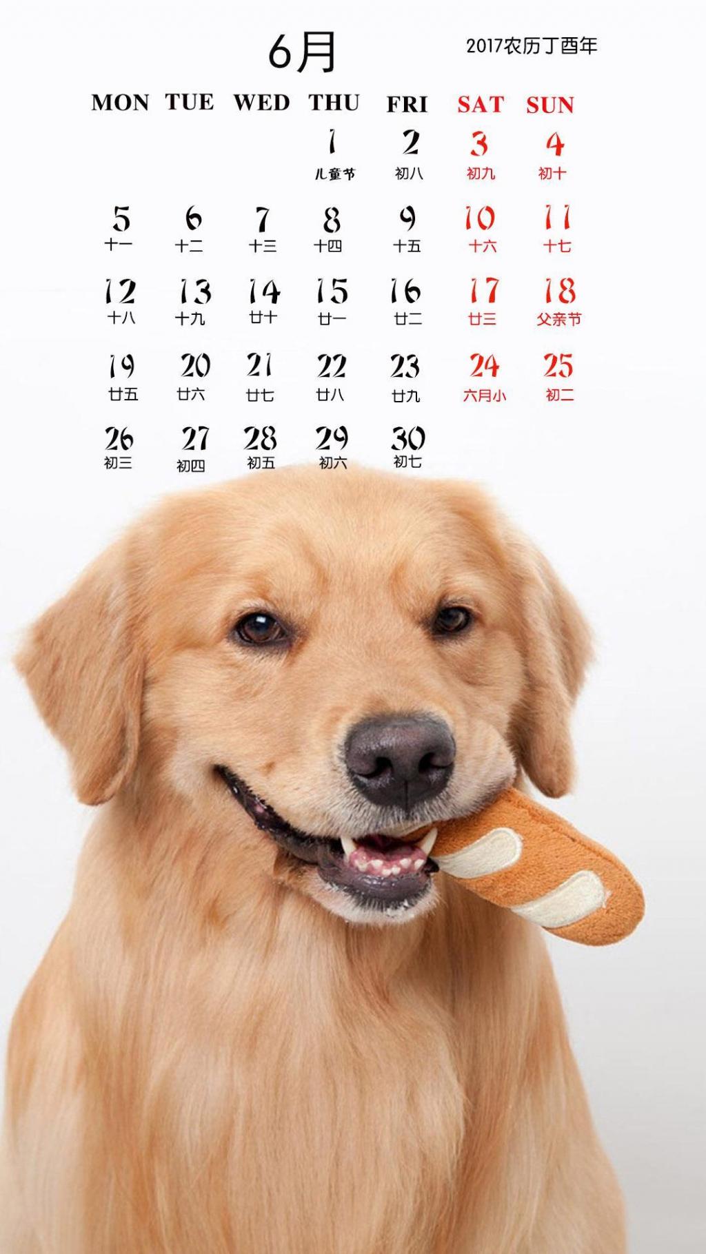 图集介绍:可爱金毛犬6月日历关于2017年,6月日历,可爱日历等精美壁纸,支持各种机型可以用二维码下载,让您能够更加方便的下载到更加精美的高质量手机壁纸。