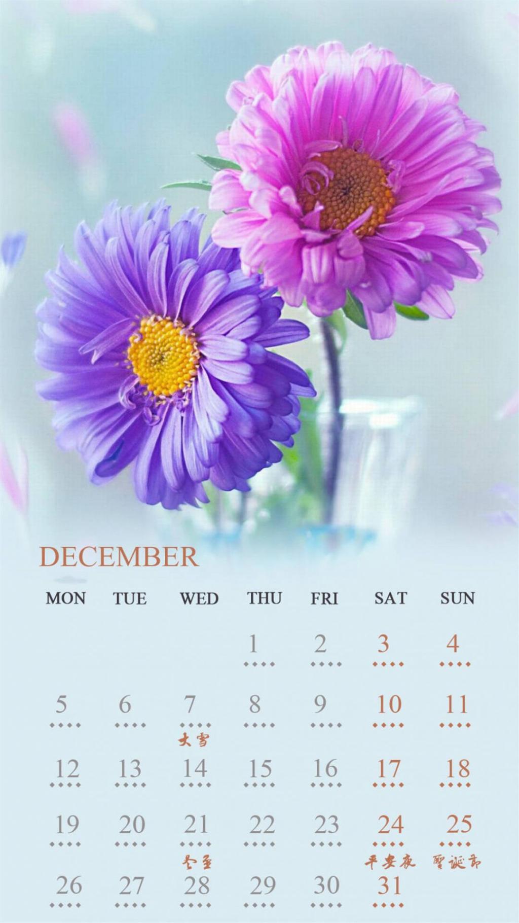 图集介绍:2016年12月小清新花朵日历关于2016,12月日历,小清新日历等精美壁纸,支持各种机型可以用二维码下载,让您能够更加方便的下载到更加精美的高质量手机壁纸。