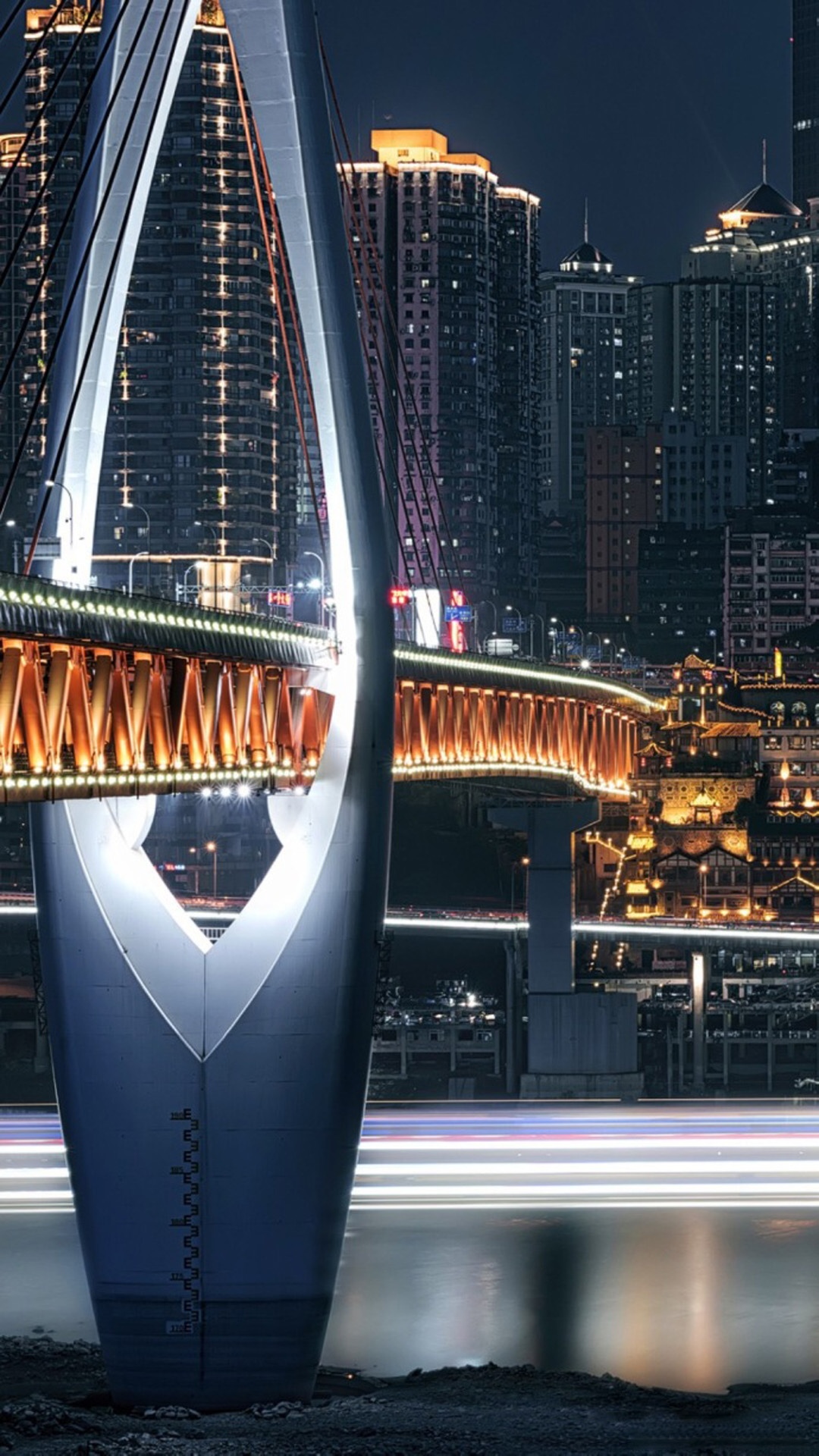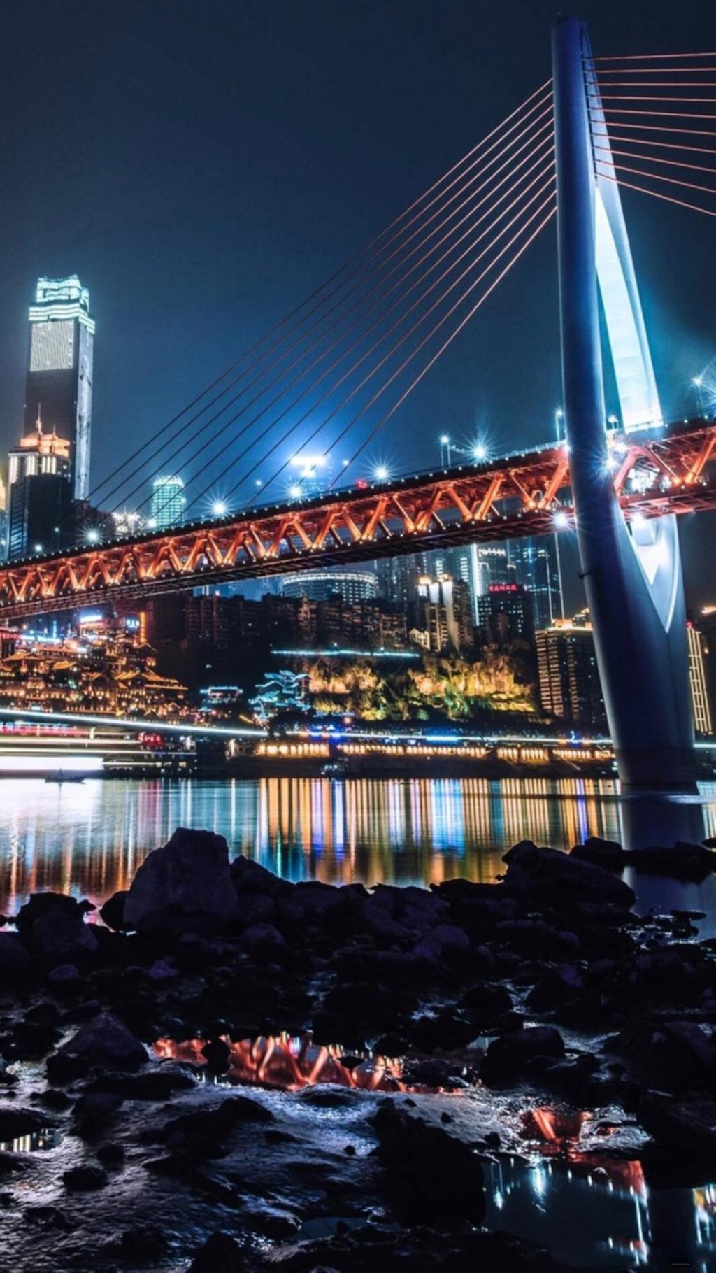 图集介绍:夜晚繁华的重庆美景高清手机壁纸。“无夜景,不重庆。”重庆的夜景素有“小香港”之称。