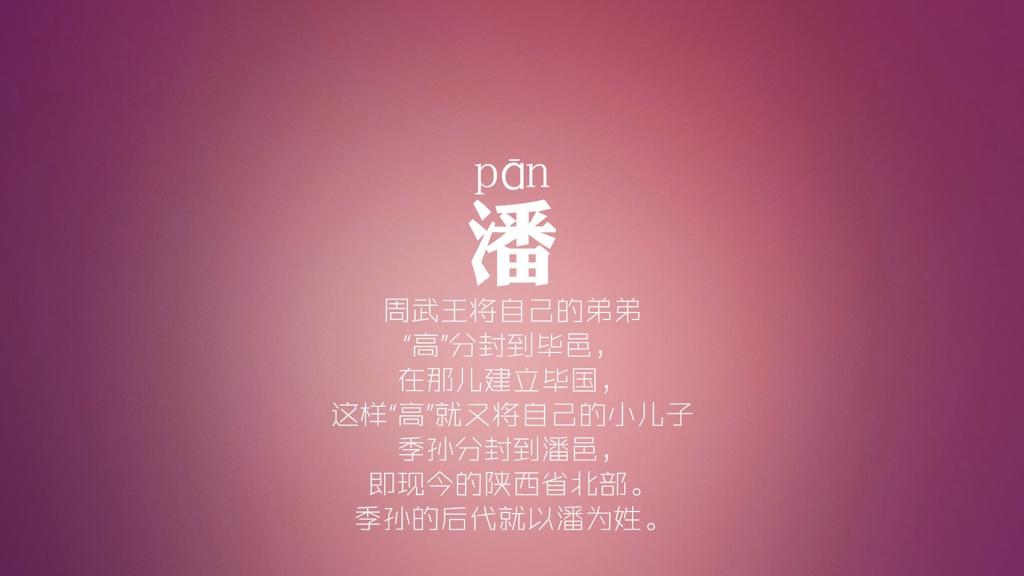 潘Pān:季孙的后代就以潘为姓。