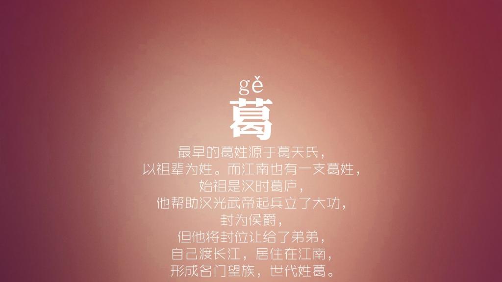 葛Gě:最早的葛姓源于葛天氏。