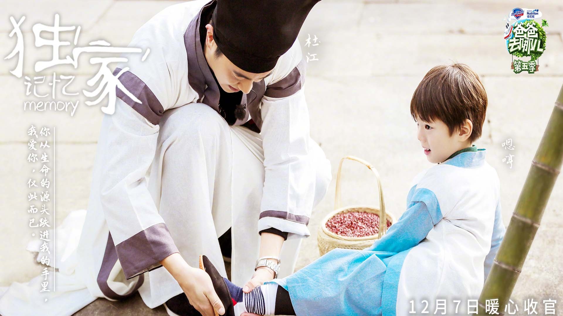 图集介绍:《爸爸去哪儿5》最后一期海报高清桌面壁纸,古镇来寻宝,武馆学功夫。转角遇老友,笑声溢满堂。当老爸吴尊、陳小春、杜江、刘畊宏、邓伦遇上老爸沙溢、董力,萌娃遇上萌娃,他们之间碰撞出的火花将照亮这个欢聚之夜~