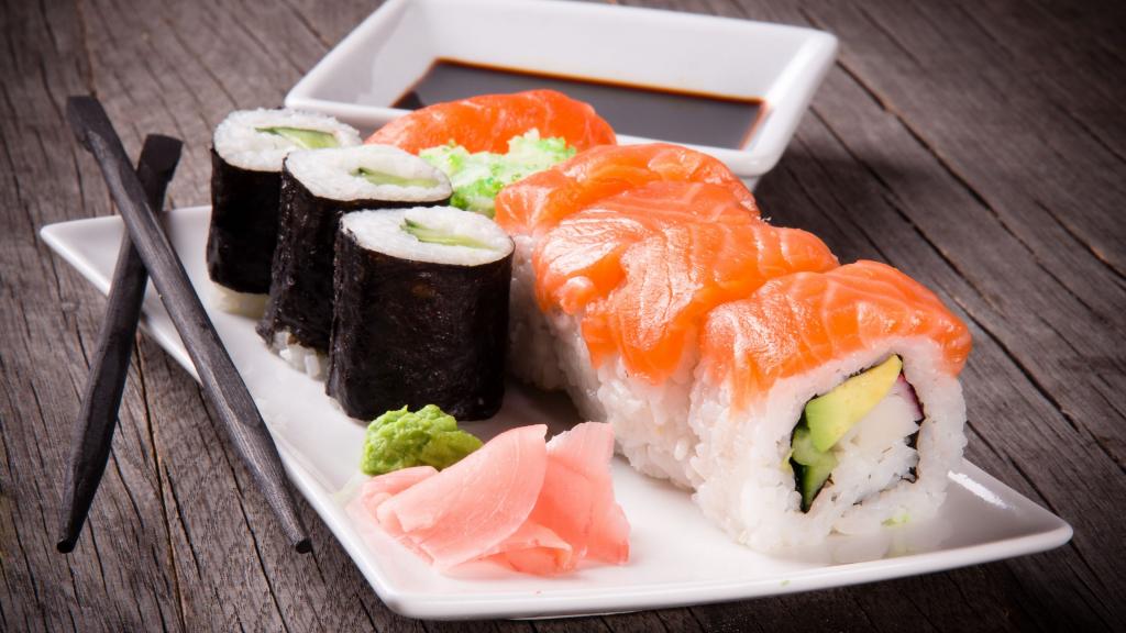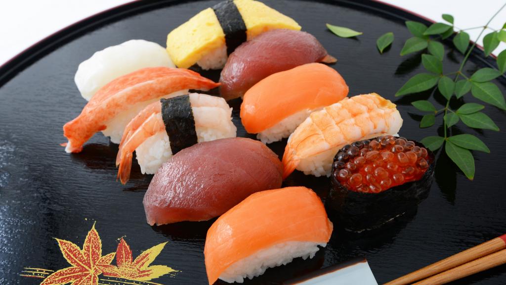 图集介绍:日本最得宠的寿司图片高清桌面壁纸。醋米饭、海鲜、蔬菜,它们抱成团,即成了在日本最得宠和最大众化的食物:寿司。