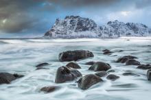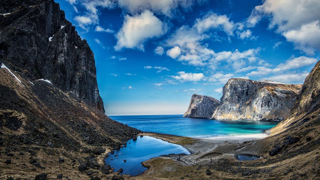 壮观的罗弗敦群岛是由上古的冰川雕琢而成的。韦斯特峡湾把它和挪威大陆隔离了开来,把它孤零零留在了辽阔的海上。尽管如此,从远处看上去,群岛仍然像一条似有似无的链子,永远连在一起。因此,当地人又叫它“罗弗敦围墙”。