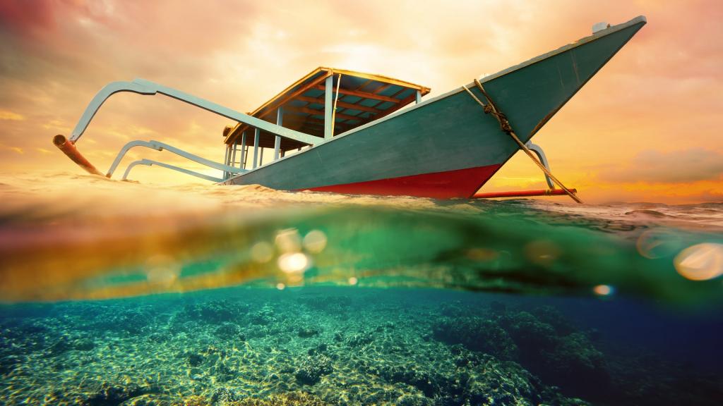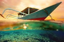 一叶孤舟迷人唯美大海俯瞰摄影