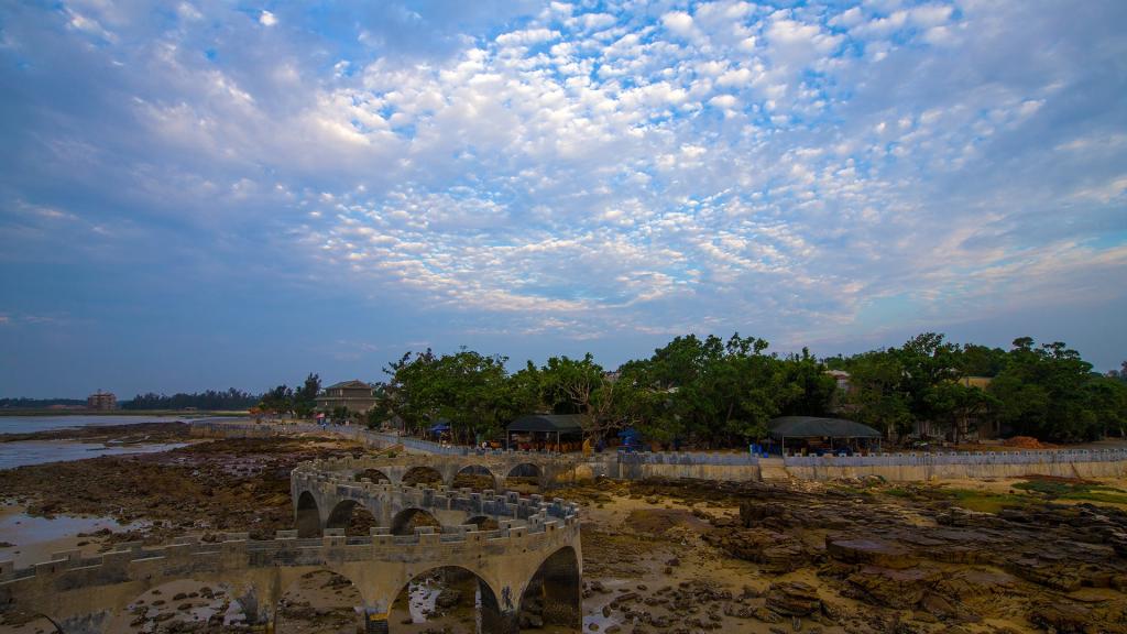 广西防城港簕山古渔村晚霞风景