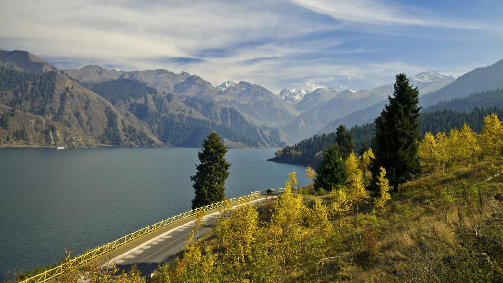 图集介绍:新疆天山天池风景壁纸,该壁纸以山水,高山,湖泊,蓝天白云,自然为主,把新疆天山天池风景电脑壁纸推荐给您,让您更快的找到您想要的电脑壁纸。