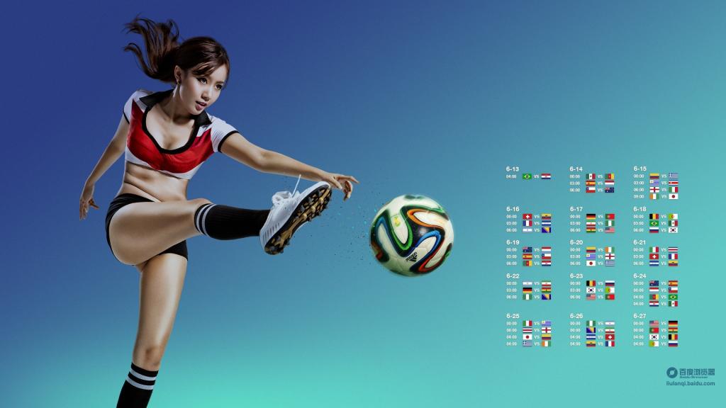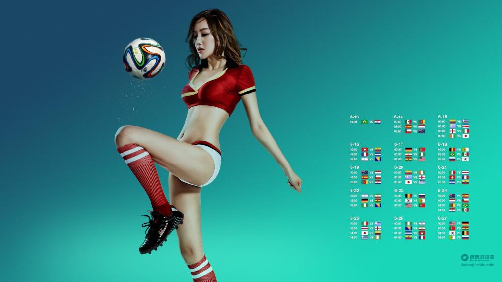 图集介绍:世界杯百度足球宝贝赛程壁纸,该壁纸以足球世界,体育,美女,性感,创意为主,把世界杯百度足球宝贝赛程电脑壁纸推荐给您,让您更快的找到您想要的电脑壁纸。