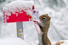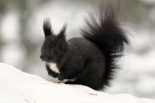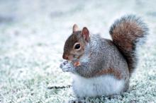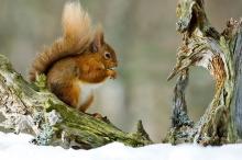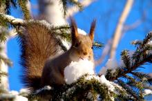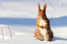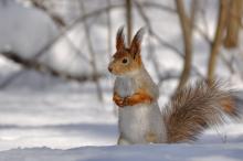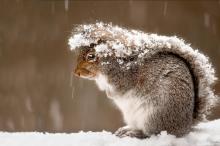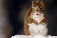 雪中可爱的小松鼠
