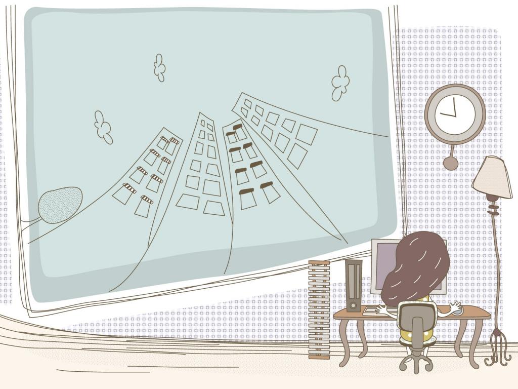 日系小清新简约办公桌插画