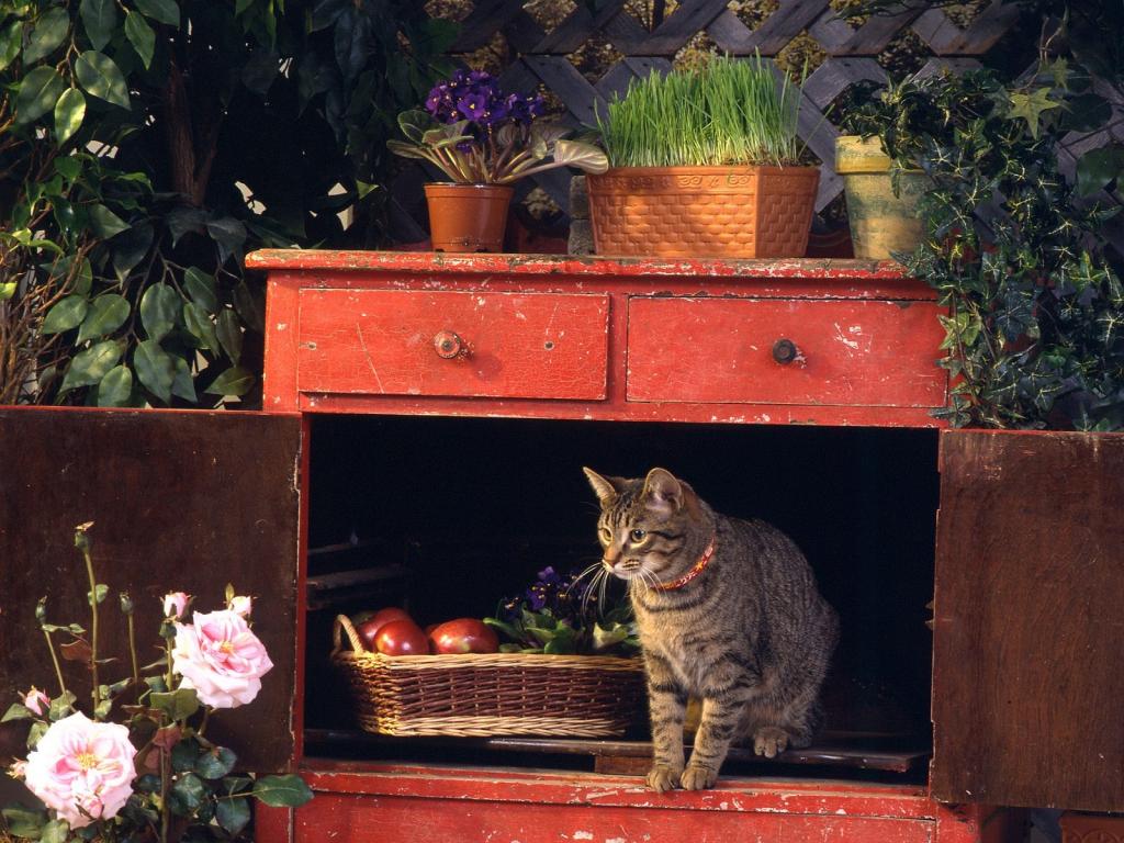 花篮里呆萌可爱的猫