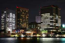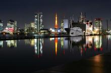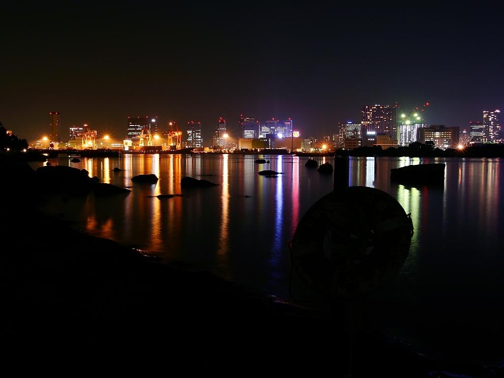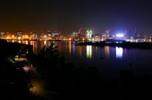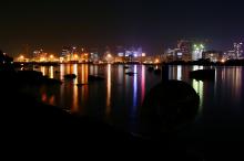 水中倒影的城市夜景