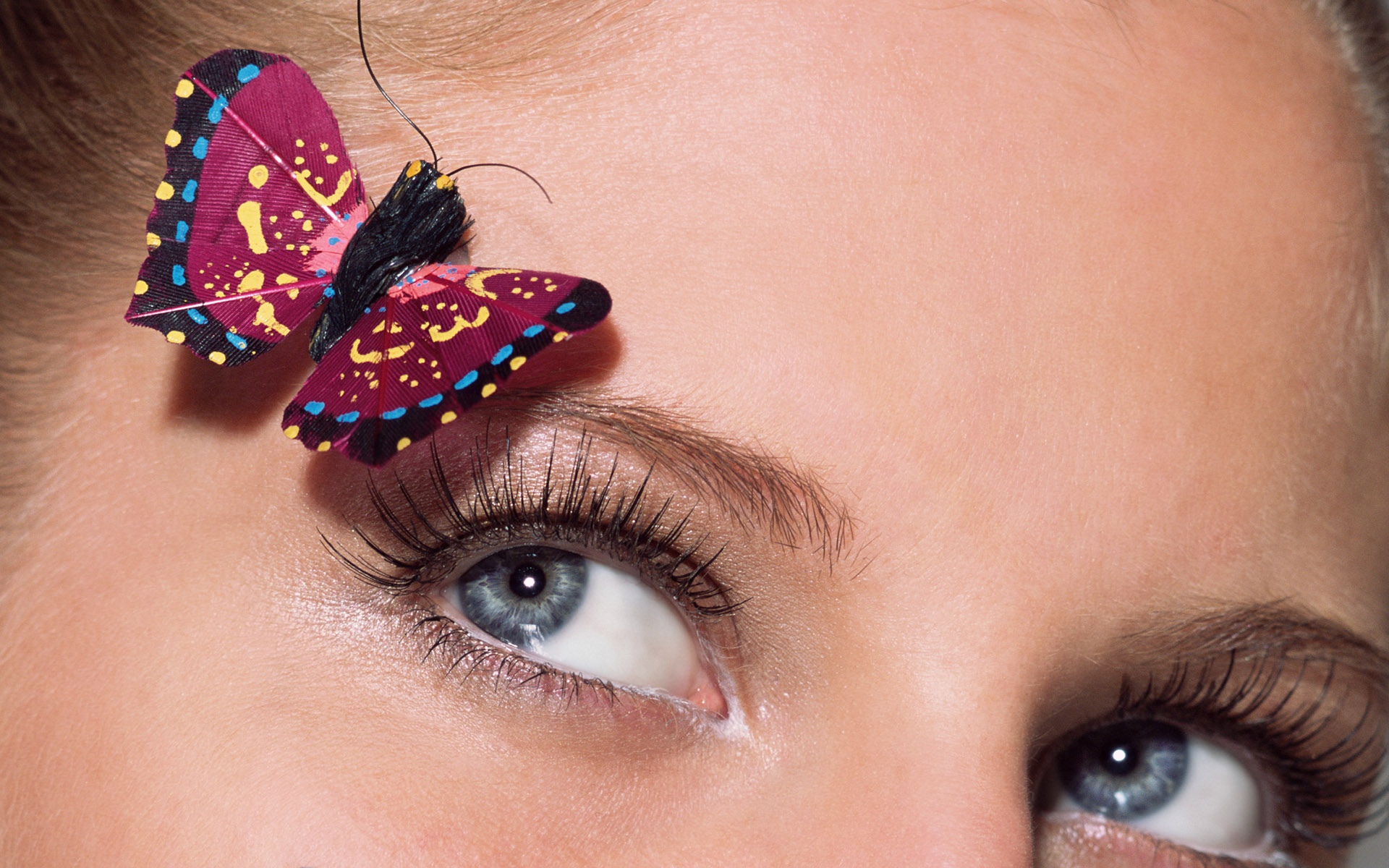 图集介绍:女性脸部特写蝴蝶壁纸,喜新厌旧是人的天性,让你常年累月的看着同一款桌面壁纸,难免会产生视觉疲劳,这时换一款新的壁纸是不是你迫切的需要呢?