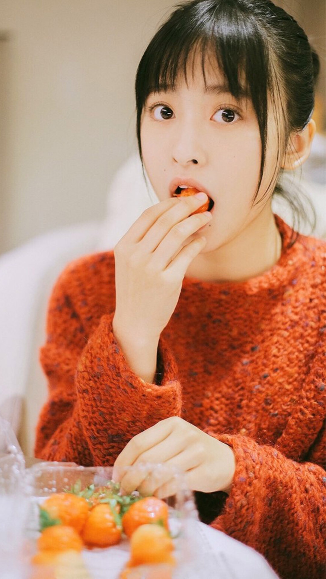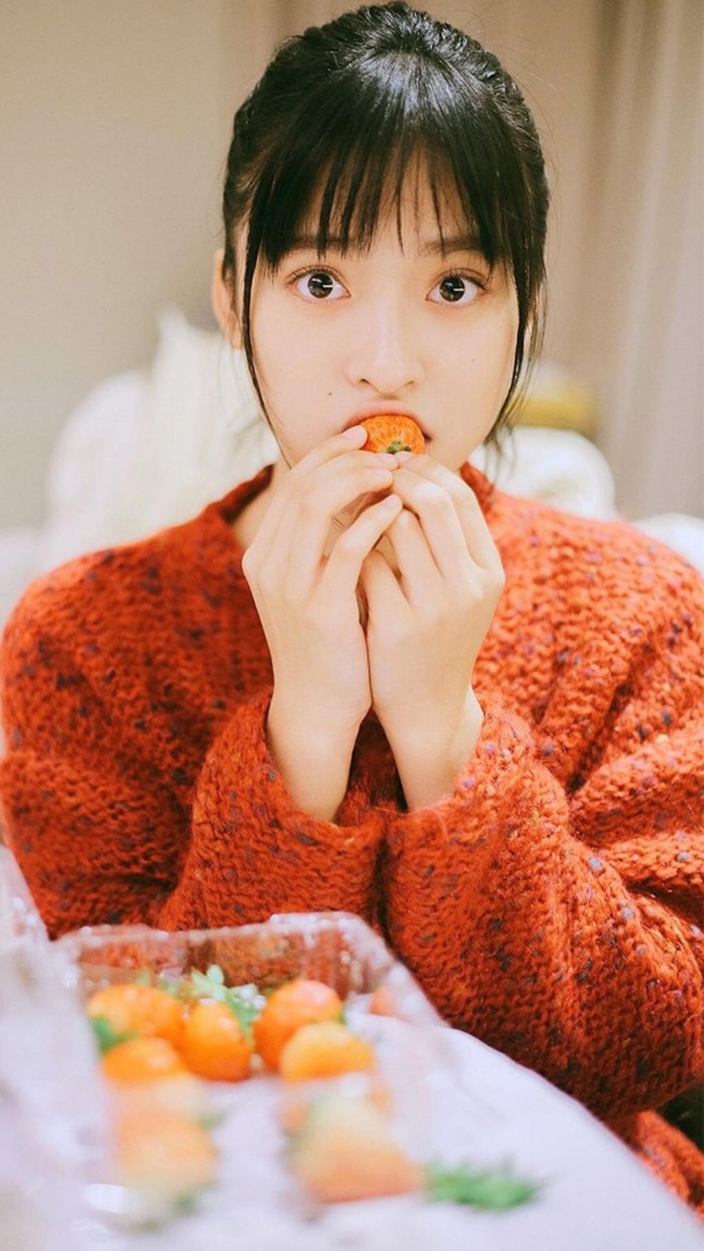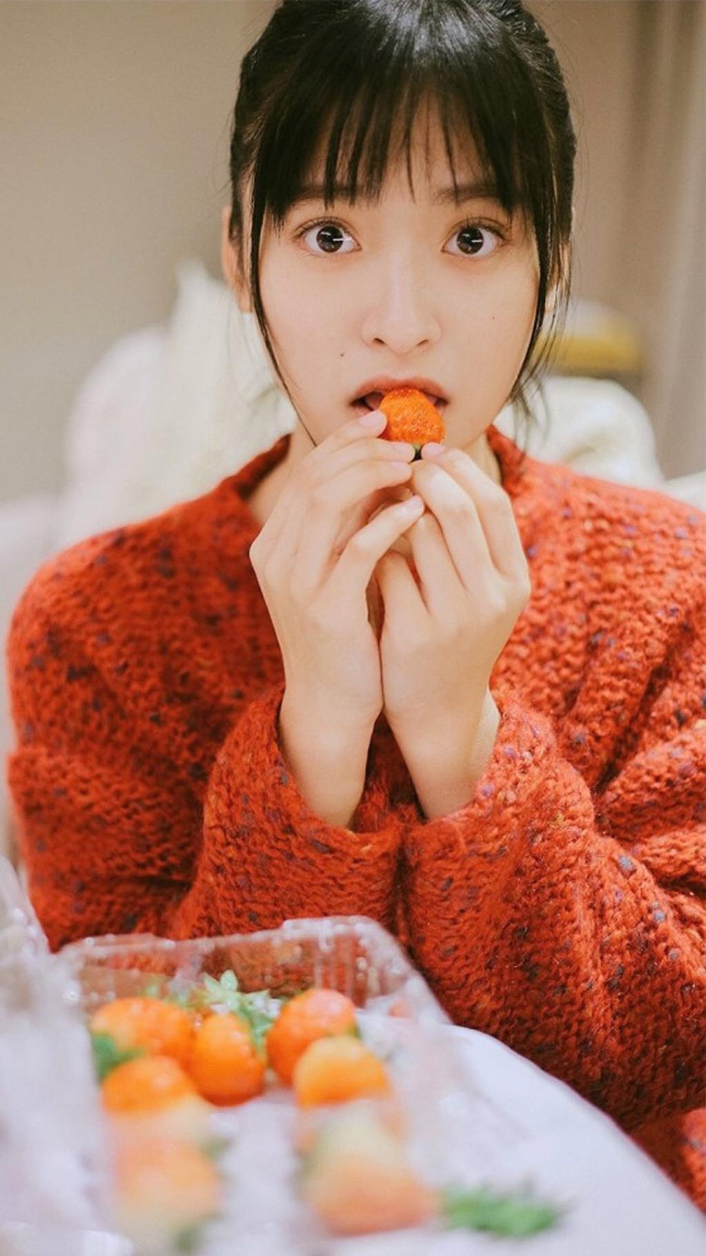 图集介绍:沈月甜美可爱居家写真高清手机壁纸,图片中的沈月身穿红色针针织衫,甜美可爱,十分清纯甜美。