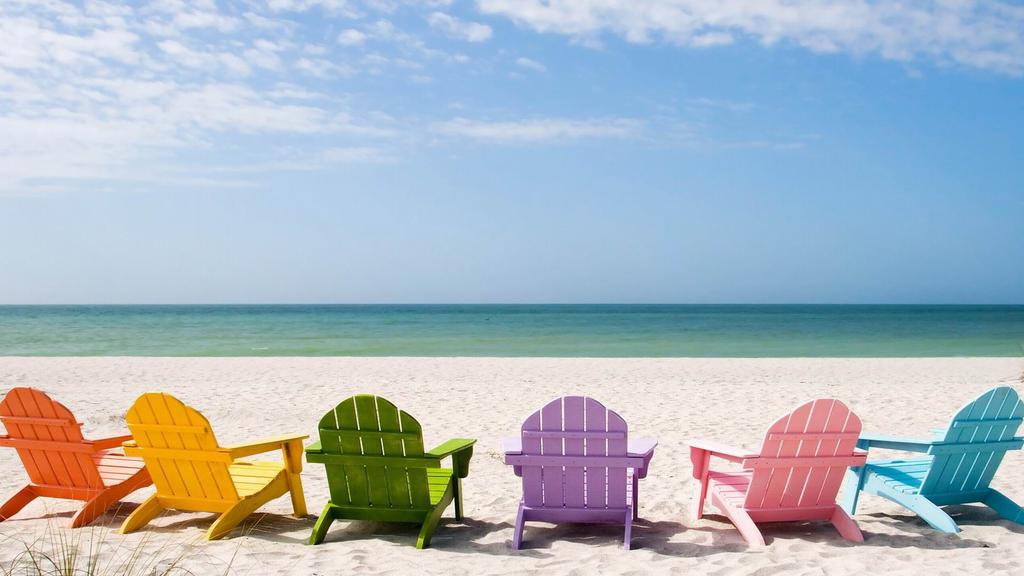 图集介绍:海滩自然风光桌面壁纸。在蔚蓝的海面上,洁白的云朵被海水染成淡淡的蓝色,沙滩上面还摆放着颜色艳丽的躺椅,非常的舒适。而且,当你漫步在夕阳下的海滩时,看着太阳余晖渐渐的退出地平面,浪花一层叠着一层的涌上沙滩,那意境真的很美,很浪漫哦!